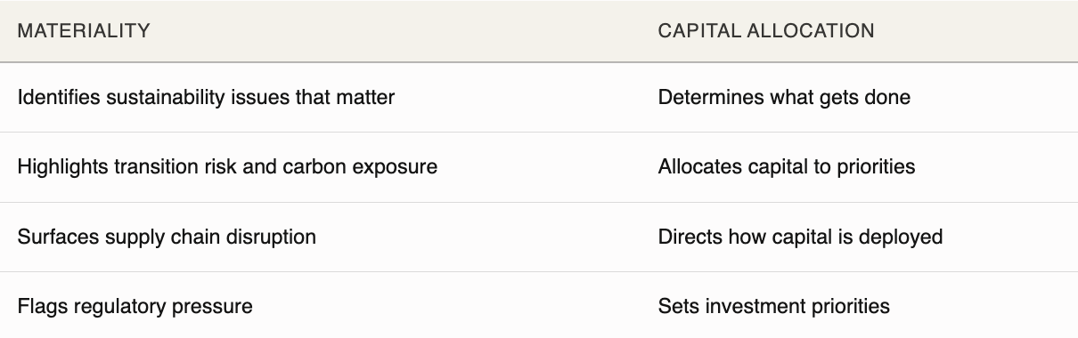 In many companies, materiality and capital allocation operate in parallel but remain disconnected.
